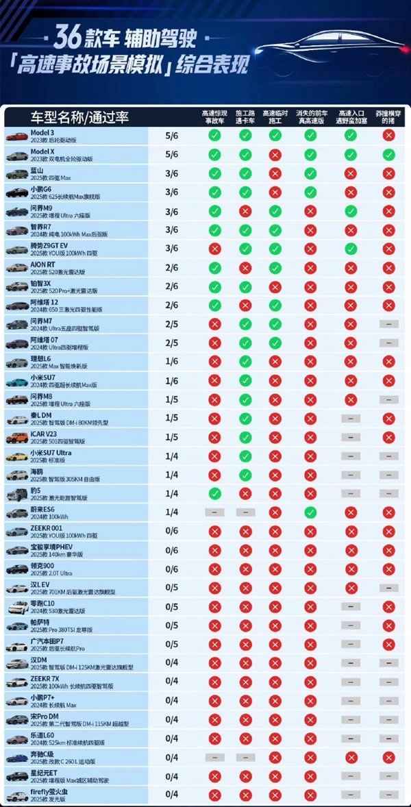今日,懂车帝对36款车的辅助驾驶能力进行了实测,特斯拉公司副总裁陶琳转发此次测试的相关微博,